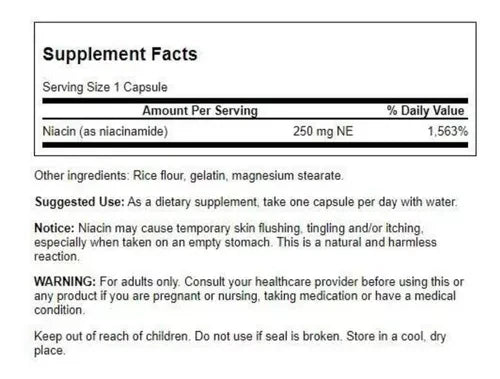 AHORRAS $10.000Niacinamida 250mg x 250 Cápsulas Swanson